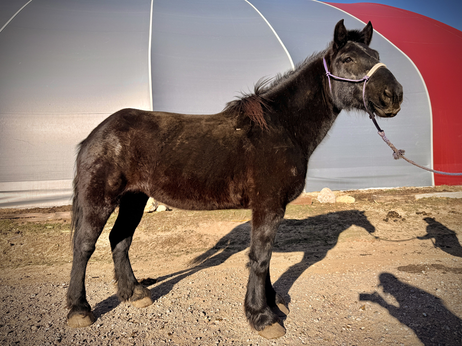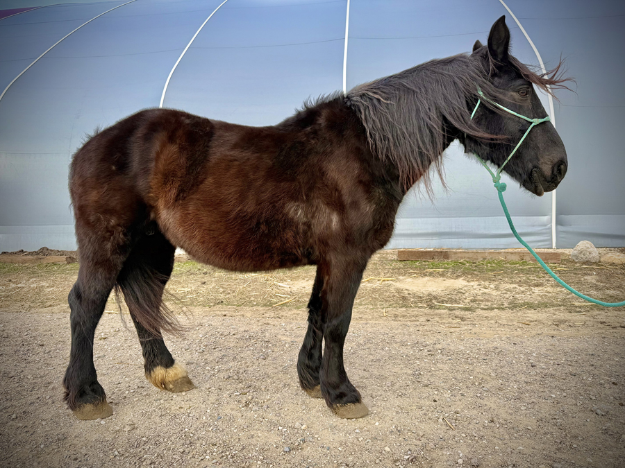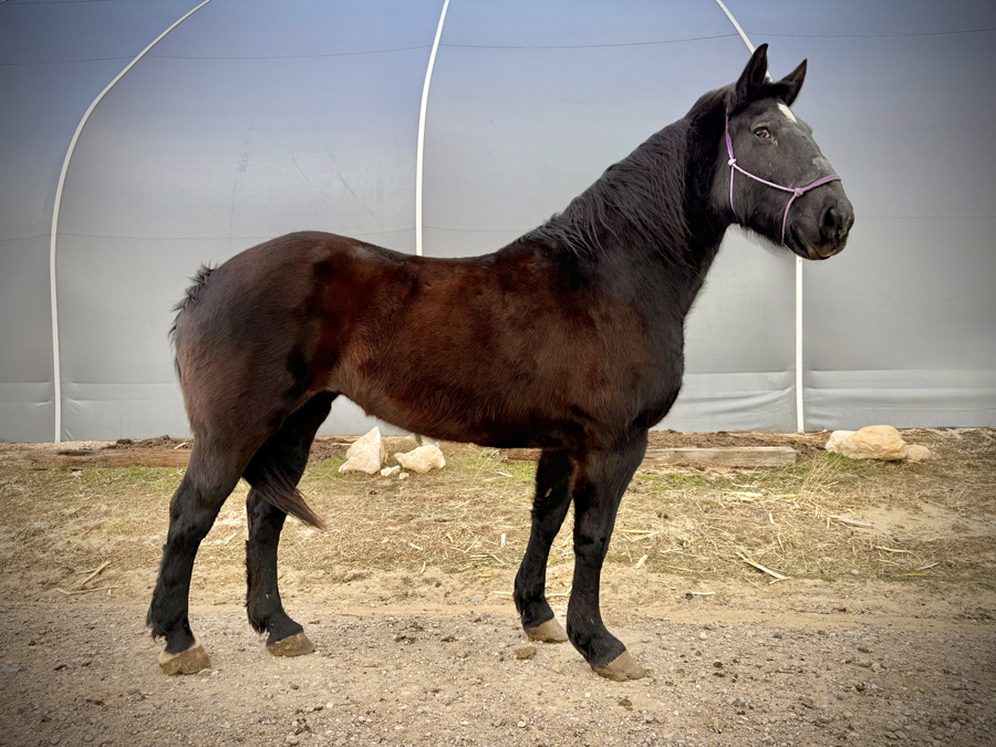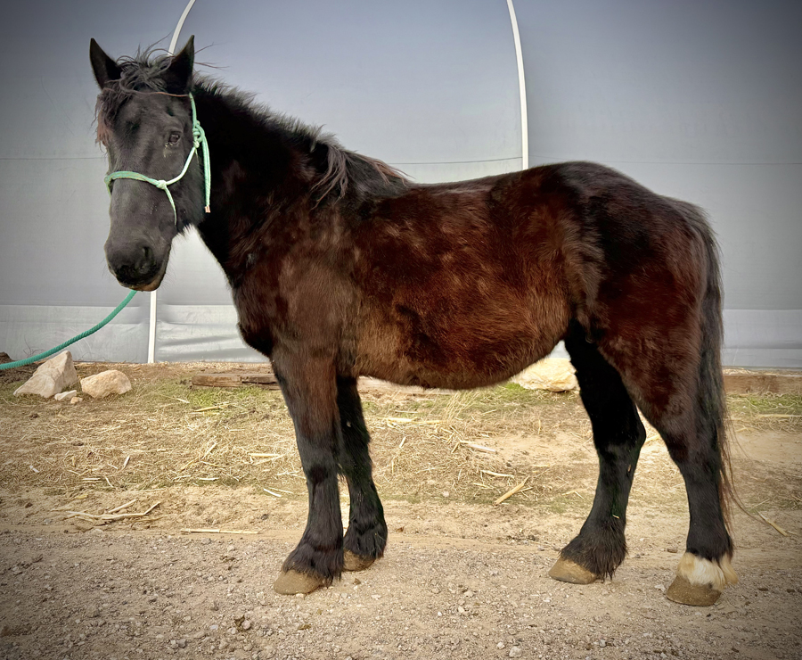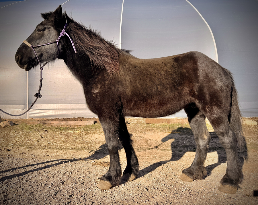 Mabel is a Black Percheron cross mare, 16.2 hands high, 16 years old.