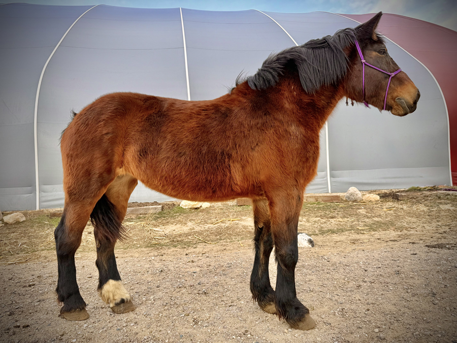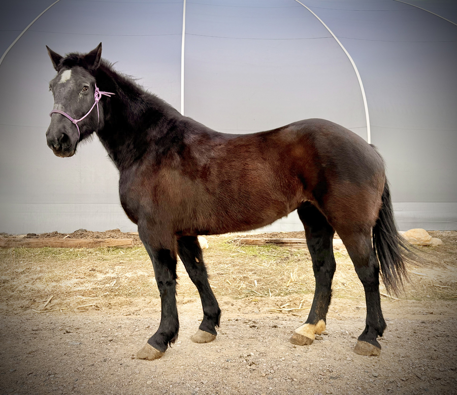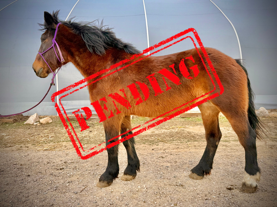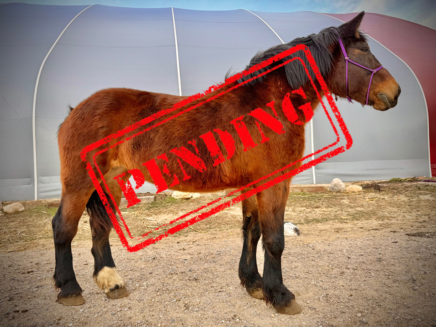 Ricka is a gentle, quiet mare who is bred and expecting a mid-summer foal as estimated by an ultrasound in Fall 2025. Sire unknown.