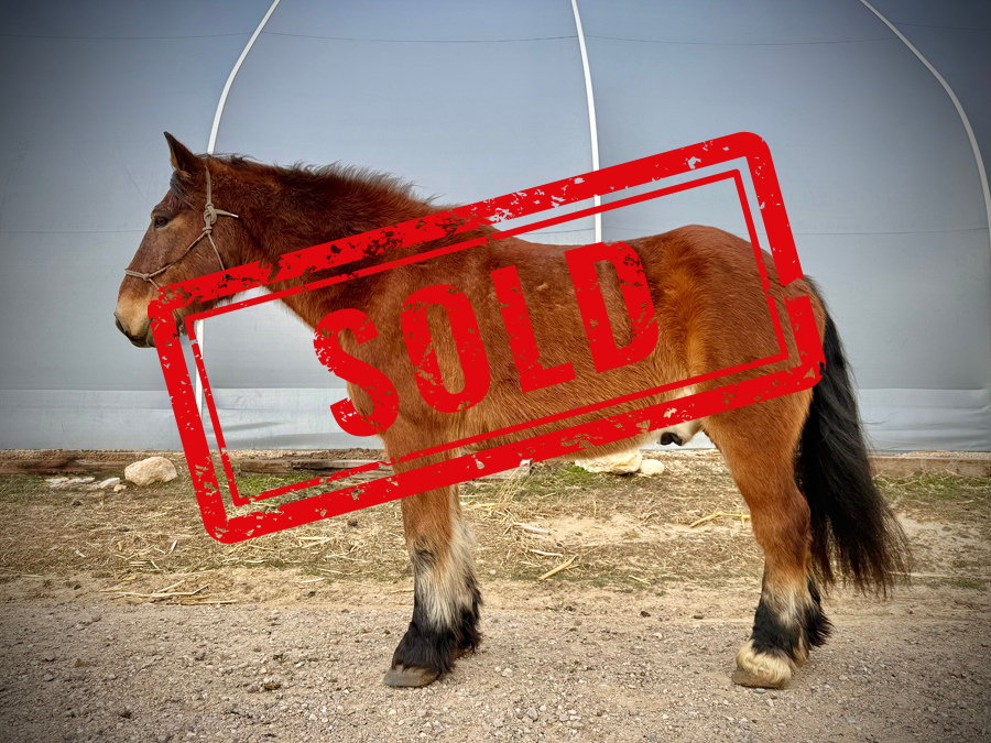 Motorcycle is a Sorrel Belgian/QH cross gelding, 16 hands high, 6 years old.